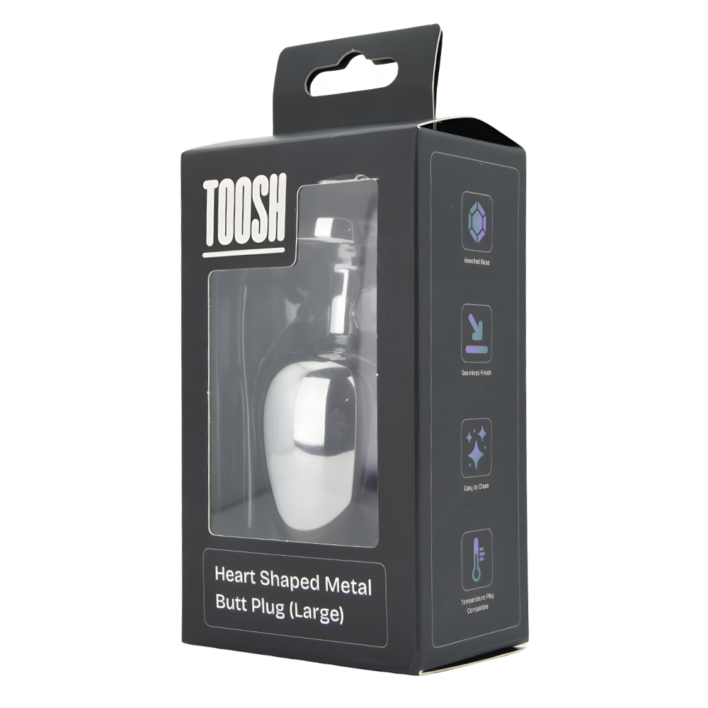 Toosh Heart Shaped Silver Butt Plug with Red Stone Large
